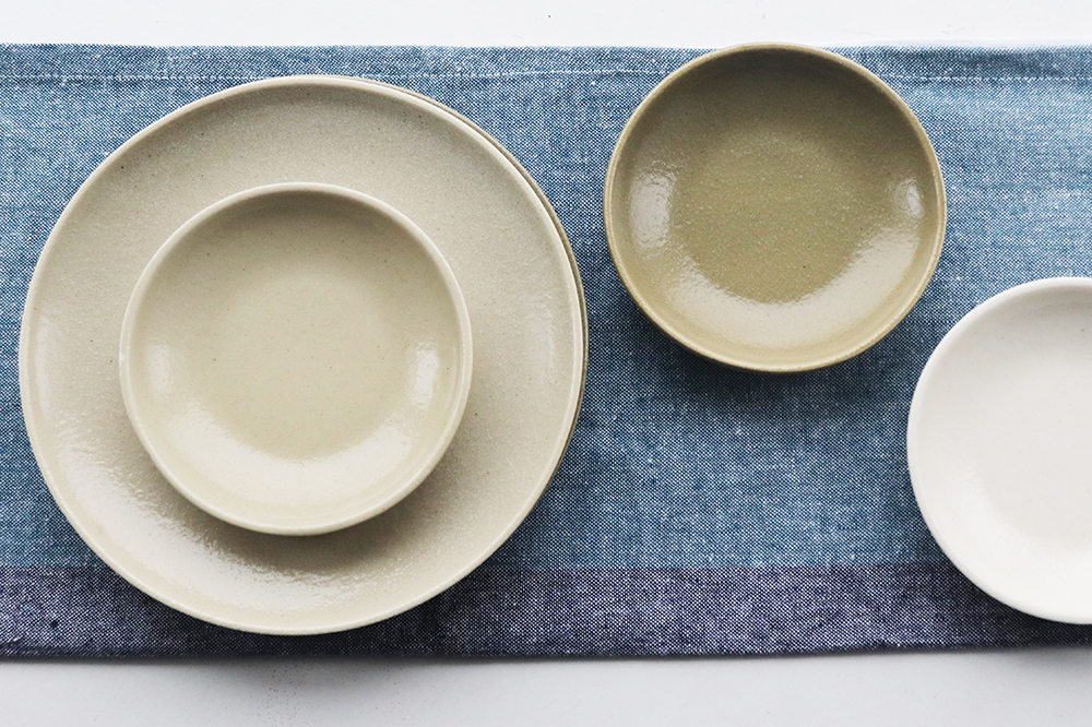 ごちそうの取り皿におすすめなのは、ディスカ プレートとディスカ ソーサー。プレートは手のひらより少し大きい使い勝手の良い万能サイズ。ソーサーは、少し深みがあり、副菜やタレ皿としても。