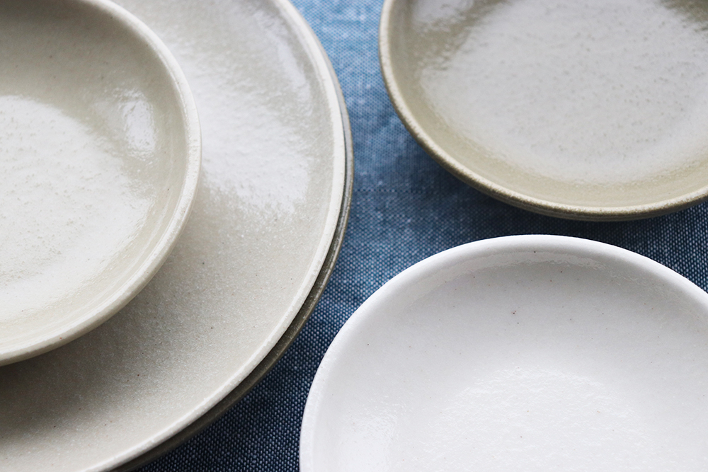 桃山時代からある志野釉をベースにしており、ぽってりざらっとした質感。落ち着いた陶器の雰囲気も併せ持っています。