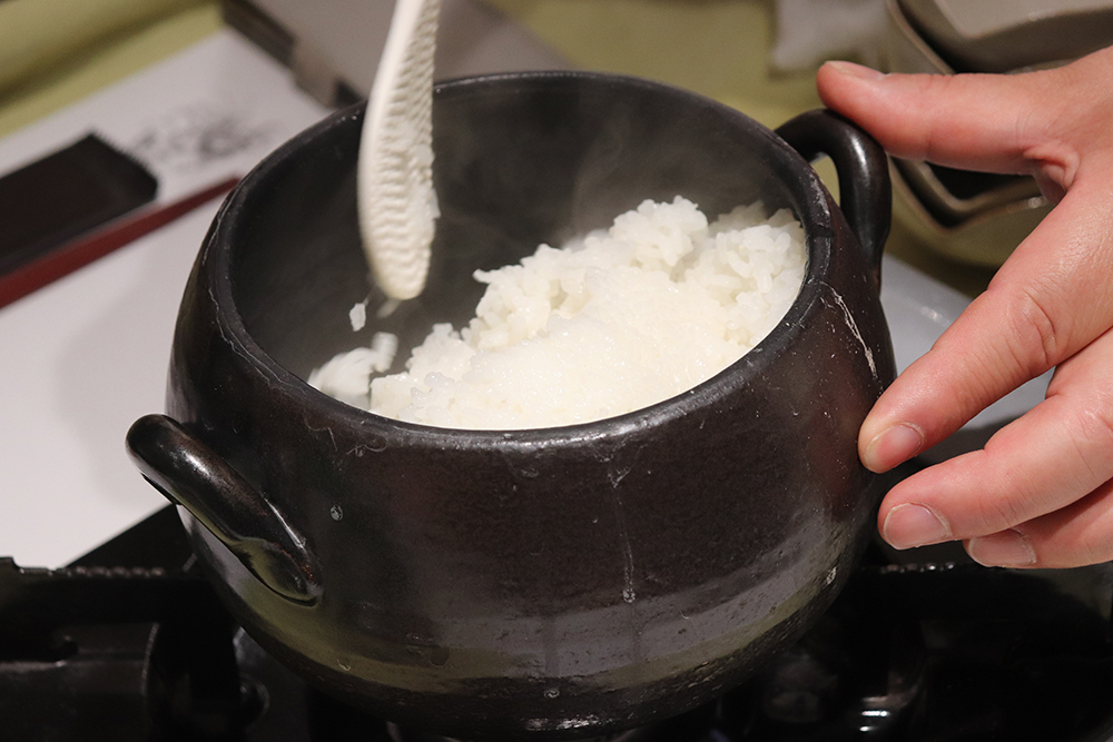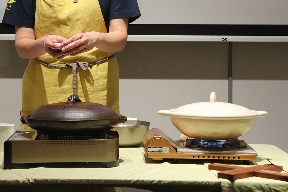 また当日は、調理の実演だけでなく、作り手である窯元からのお話の時間もあり、土鍋を使うポイントや土鍋ができるまでの製作の話、土鍋の使いはじめから収納までの話などをお伝えさせて頂きました。